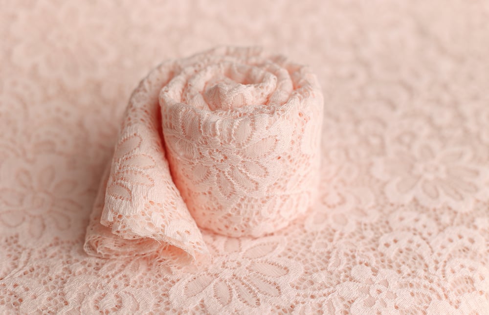 Beautiful soft floral lace backdrop in ballet pink color. Underlayer needed.
